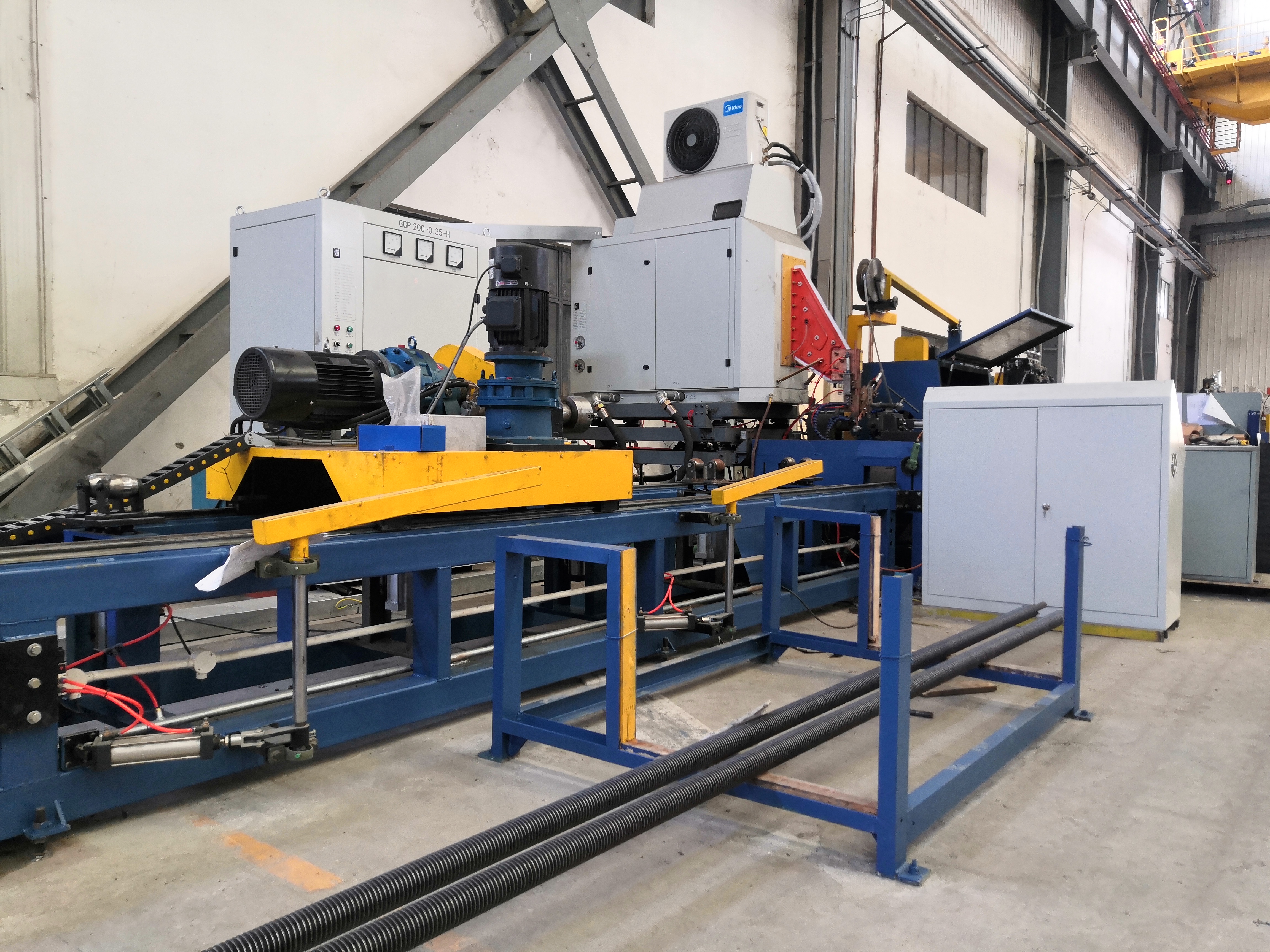 本生產(chǎn)線實(shí)現(xiàn)了鋼帶自動(dòng)開卷、自動(dòng)矯平、自動(dòng)送帶、自動(dòng)沖片、自動(dòng)焊接整個(gè)全自動(dòng)流程